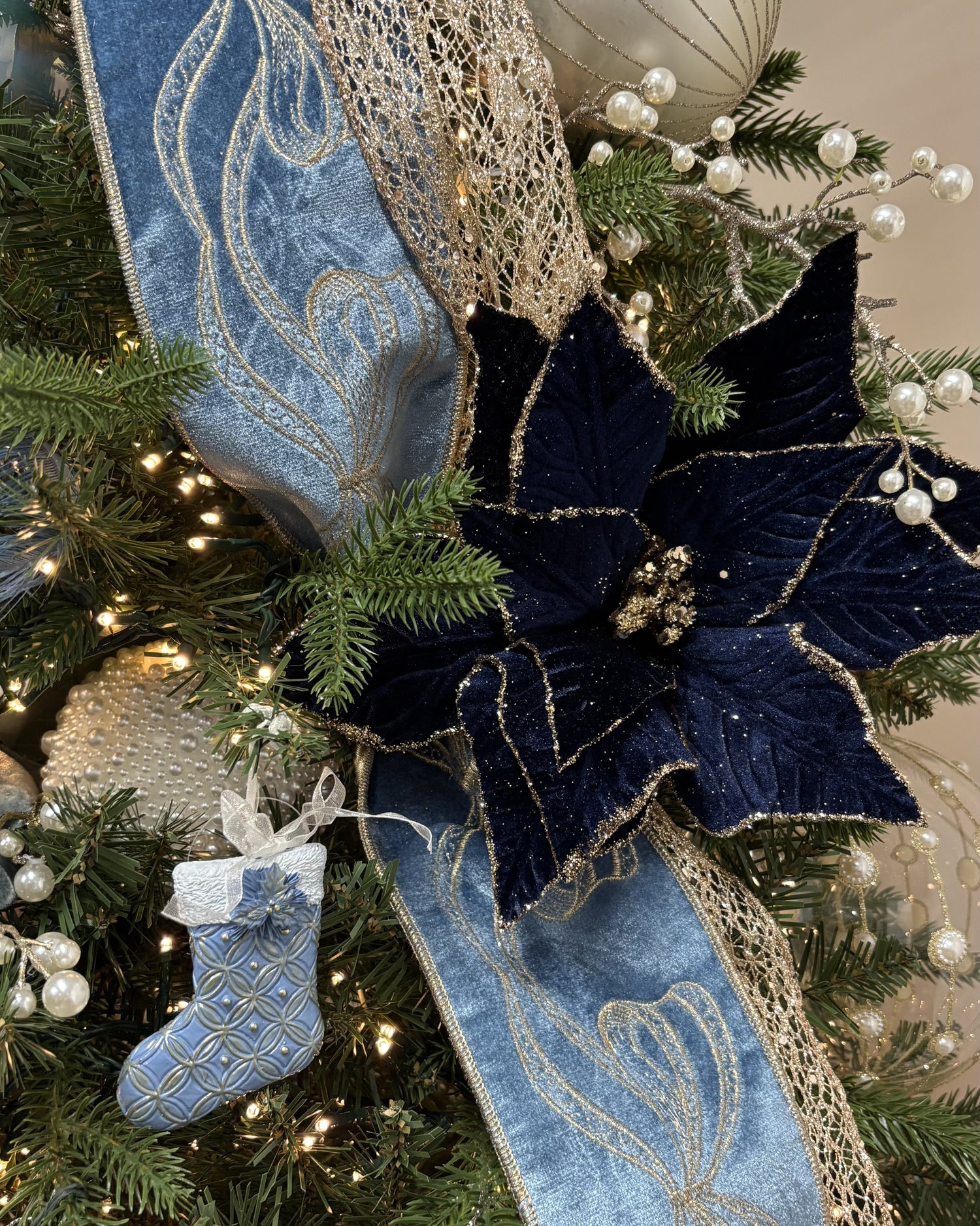 Navy Glitter Poinsettia