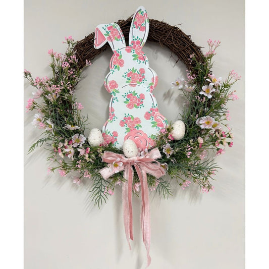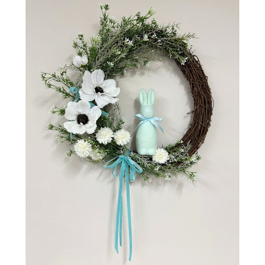 Flocked Rabbit with Bow Moss - Assorted Sizes