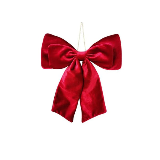 Dark Red with Dot Hanging Bow Velvet - Medium