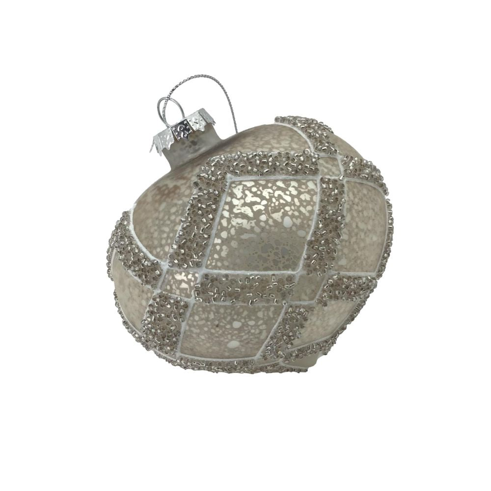 Style your Christmas with this Platinum Glass Onion Ornament featuring classic onion shape in elegant platinum glass construction. Perfect as scatter/filler baubles, excellent in wreaths and garlands, or in vases and bowls for instant Christmas cheer. Explore our Champagne Splendour theme for complementary pieces.
